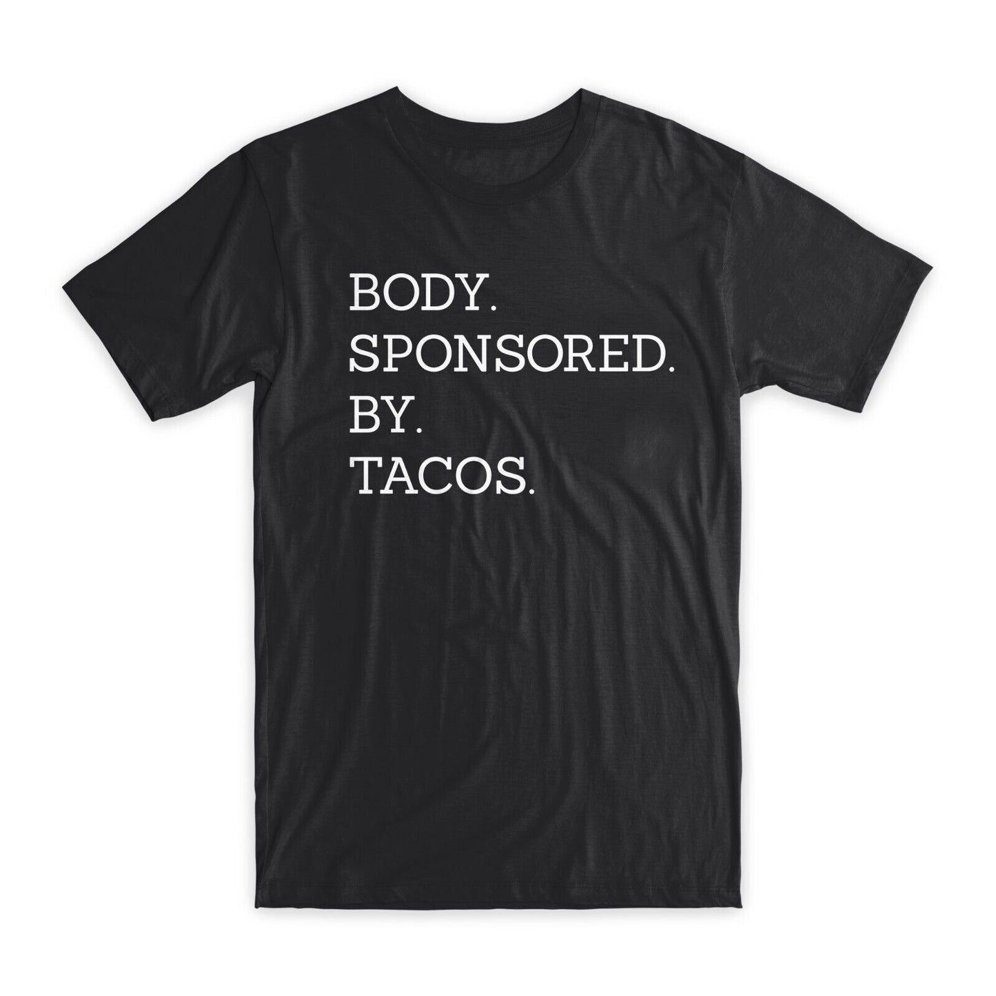 Body Sponsored By Tacos T-Shirt Premium Soft Cotton Crew Neck Funny Tee Gift NEW