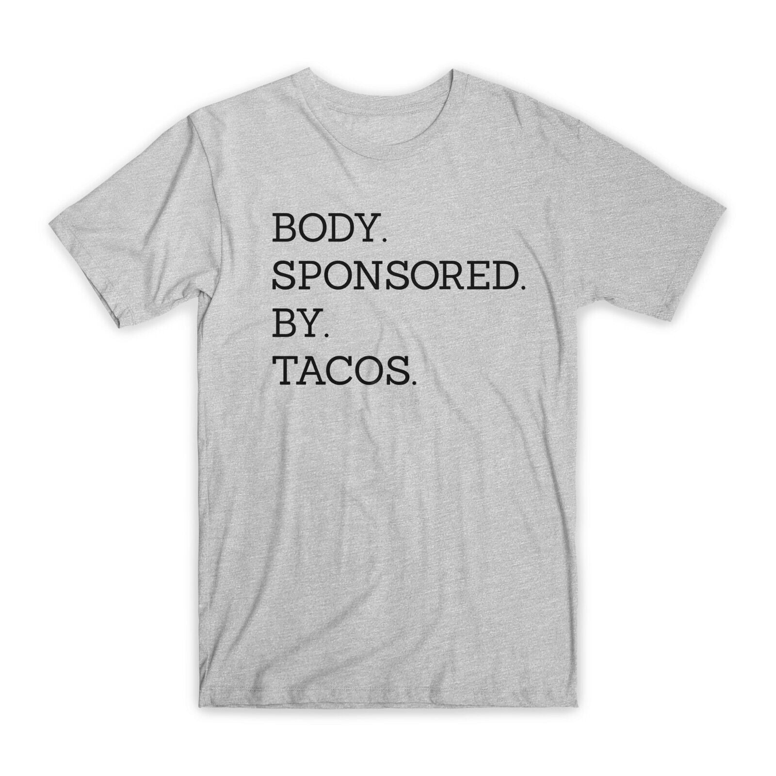Body Sponsored By Tacos T-Shirt Premium Soft Cotton Crew Neck Funny Tee Gift Black/Gray NEW
