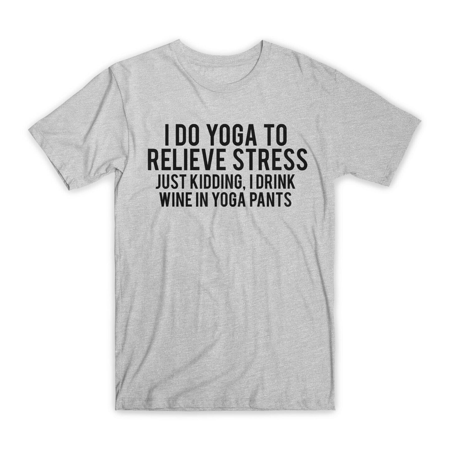 I Do Yoga To Relieve Stress T-Shirt Premium Cotton Crew Neck Funny Tees Gift Black/Gray NEW