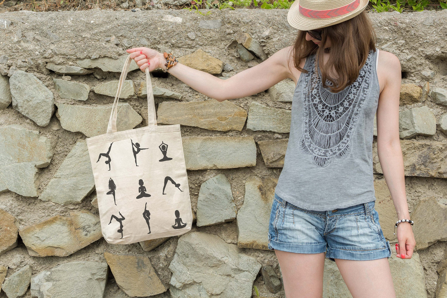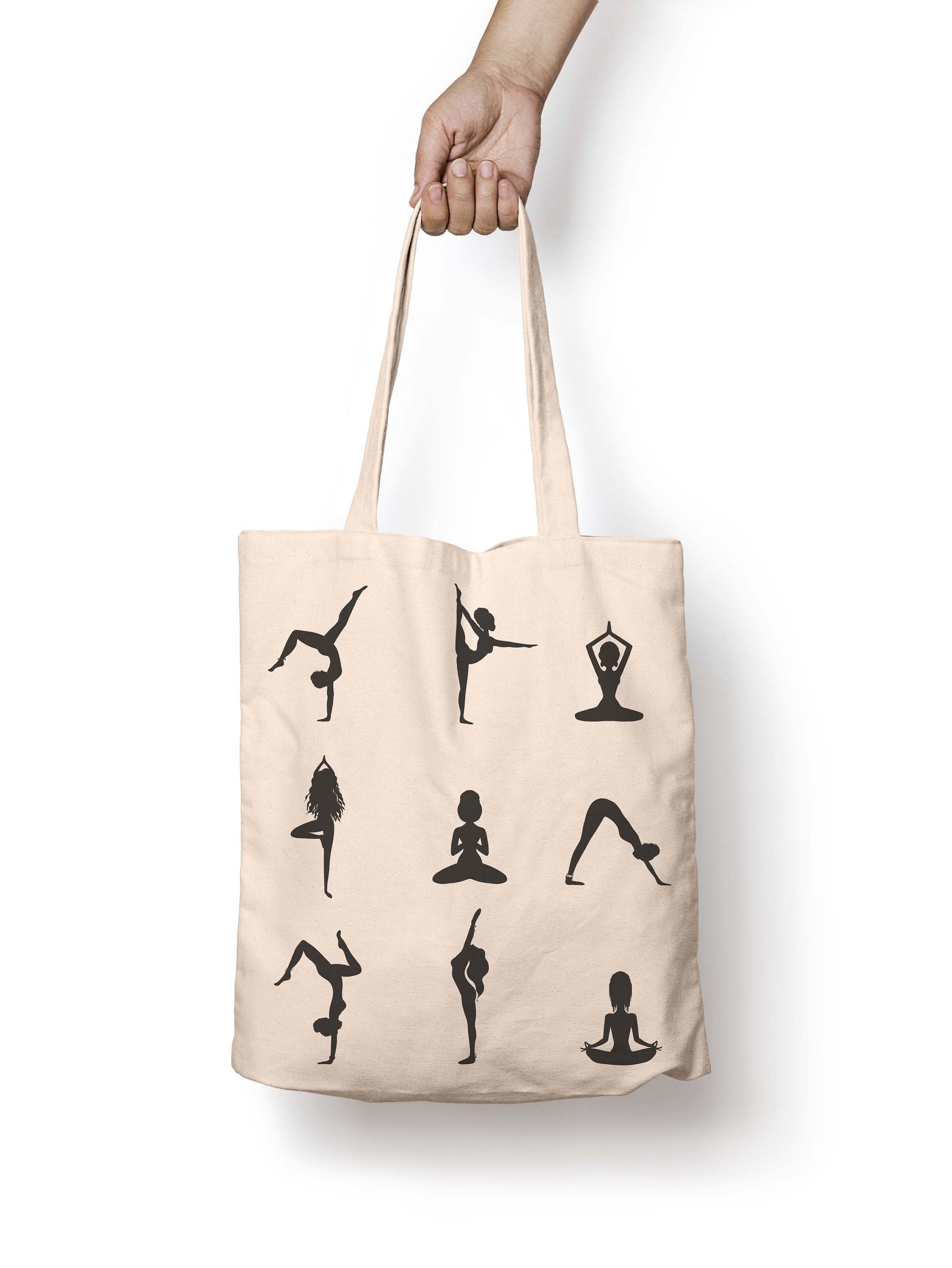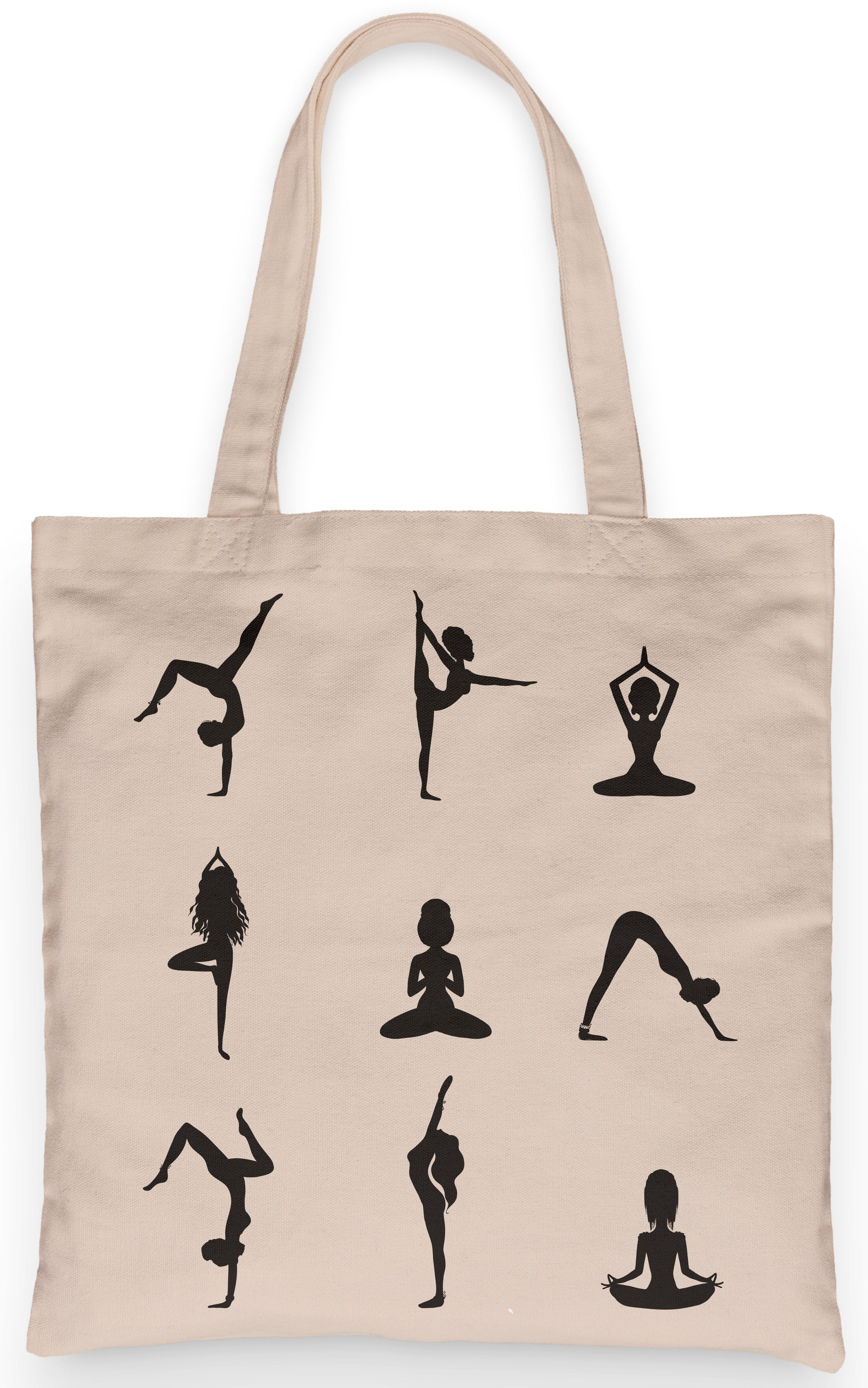 Fun and practical Yoga Pose Silhouettes premium canvas tote bag is great for groceries, clothes, books, and more. A fun and thoughtful gift for friends, family, or yourself.