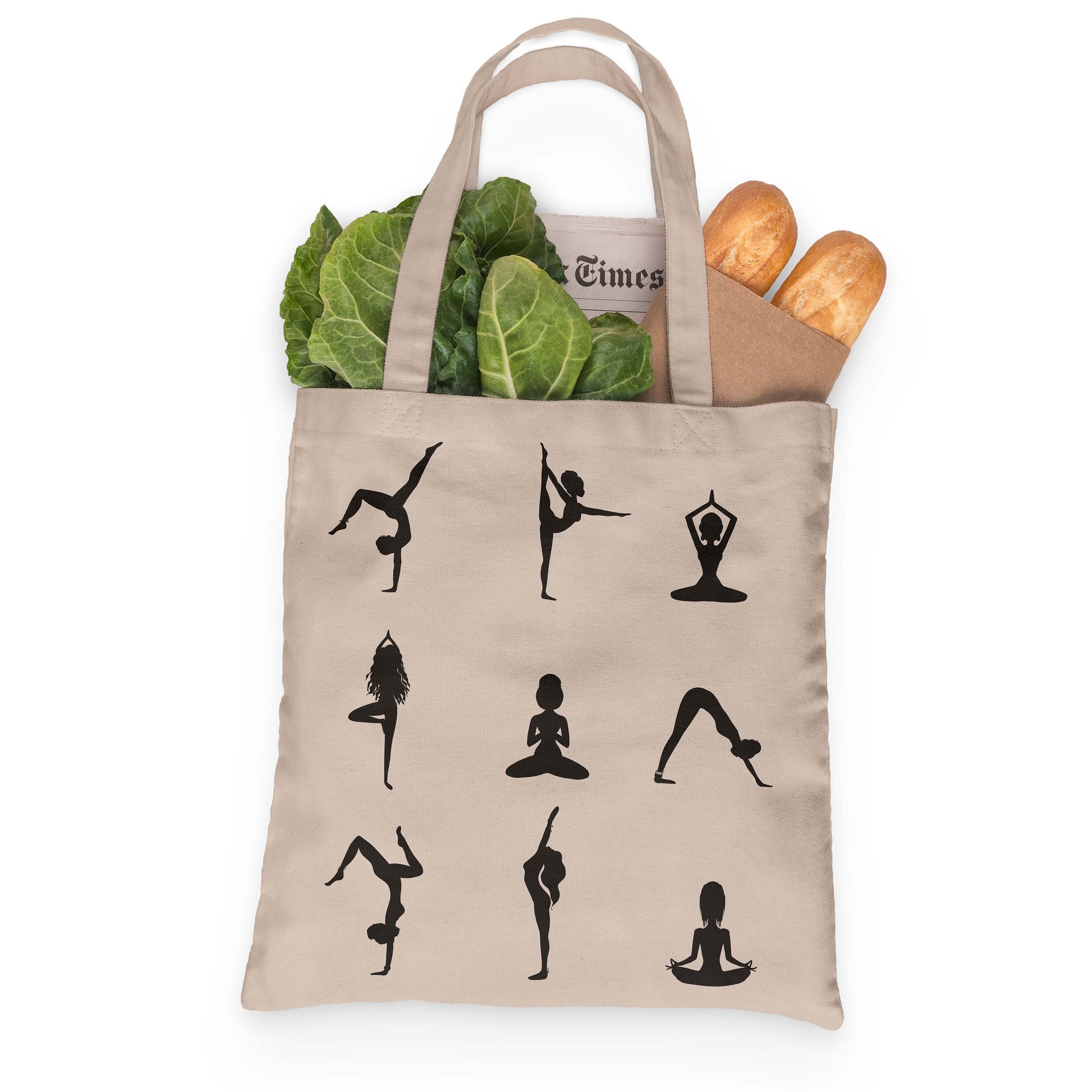 Yoga Pose Silhouettes Tote 100% Cotton Grocery Tote, Book Tote, Office Tote. Premium Cotton Canvas 15.5" by 19.5 " with 5" Gusset on bottom